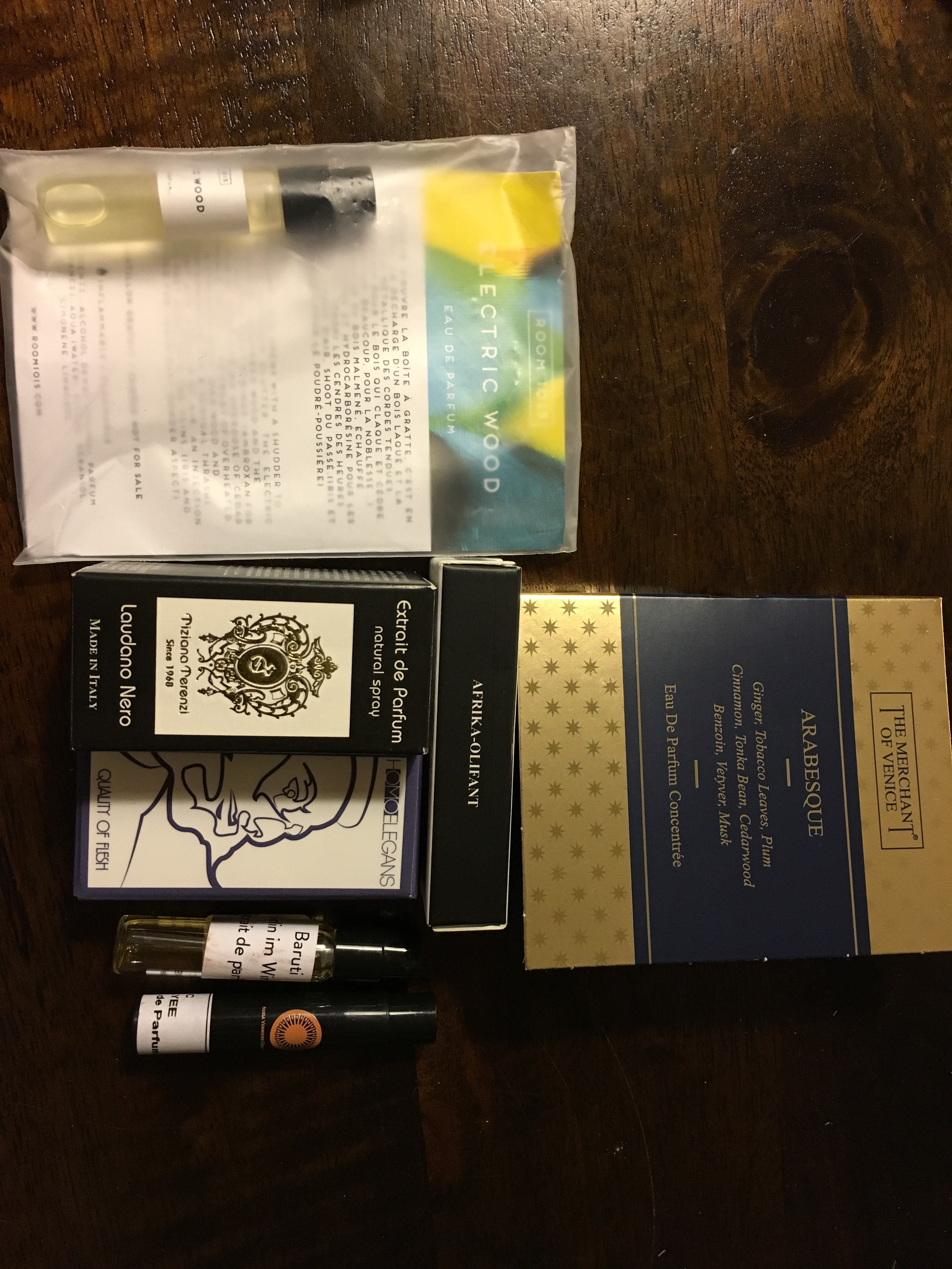 Nyhet igen – nederländska Baruti. Väldigt organiska dofter. Några intressanta historier bakom och trevliga samtal med parfymörerna. Berlin Im Winter, Chai och Nooud – tack, Spyros!