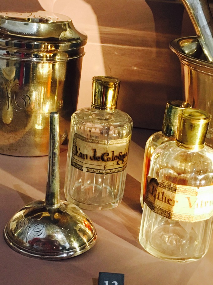 Här pratar vi seriöst. Eau de cologne, dekanteringstratt (inte längre seriöst :D) och en flaska Ether Vitriol, dietyleter, 1700-talets Alvedon :P. Och jag kommer inte ihåg vad som fanns i den tredje flaskan, åker ni dit så kolla, är ni snälla!