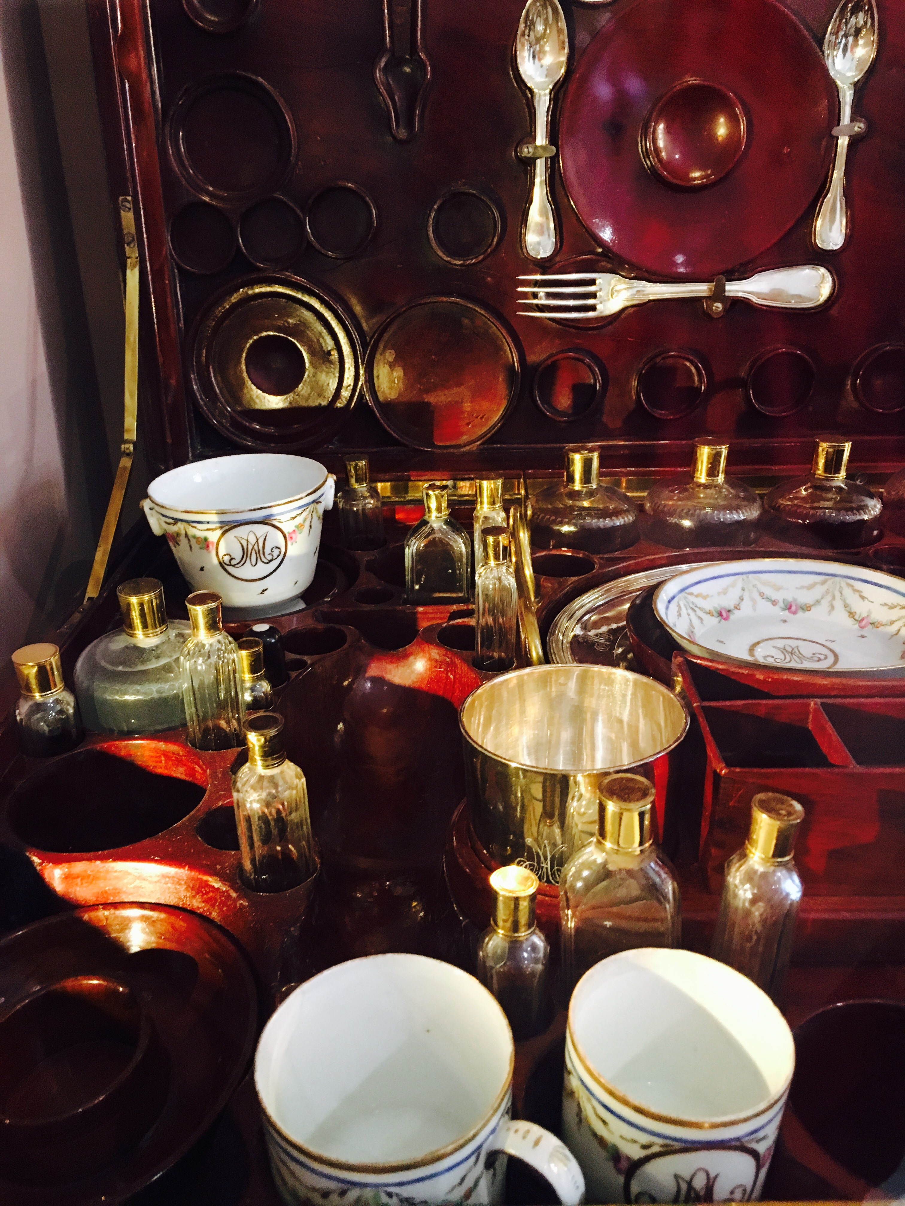 Marie Antoinettes resekoffert – otroligt fin! Här fanns det allt vad en modern (iaf i slutet av 1700-talet) kvinna bör ha med sig på en resa. Myyycket plats till parfymer och kosmetika. Luddes den XVI reseprylar fick inte plats dock.
