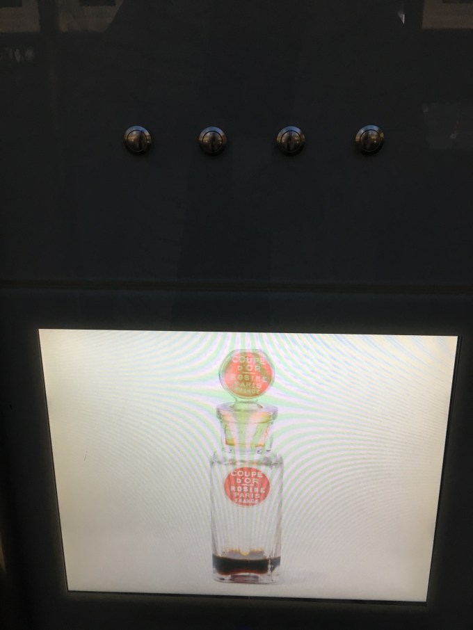 Det här var helt fantastiskt! Du trycker på knappen och diffusorn som finns inuti sprider doften av just denna parfym, fyra olika vid varje station. Samtidigt som du kan läsa en kort information om doften. Synd bara att några funkade inte 😉