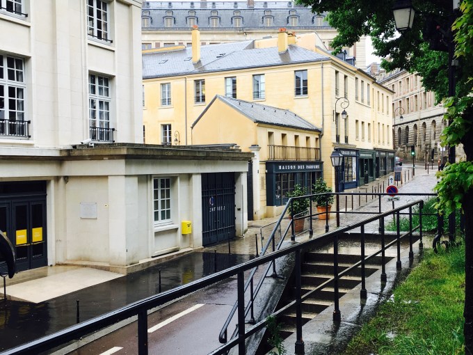 Man kliver av RER C på Versailles Rive Gauche. Sån’t där skitväder hade vi…