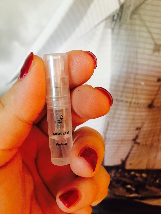 Just idag testar jag Komorebi och den är inte alls ”min”. Även om öppningen är trevlig (som en fruktträdgård en sommarmorgon, små blommigt sådär) så i hjärtat och basen finns det så stark metallisk marinackord som gör att jag kommer välja bort doften, tyvärr. Mysken kan ibland inta en sådan udda form som jag inte klarar av.