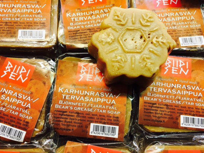 Jag testade nämligen en sak som kan vara en turistsevärdhet (turistdoftvärdhet?! 😉 ) i sig. Björntvål med doft av tjära och lime. Jag älskar doften av tjära men just den tillsatsen i form av björnfett… gör en björntjänst för den tvålen i mina ögon.