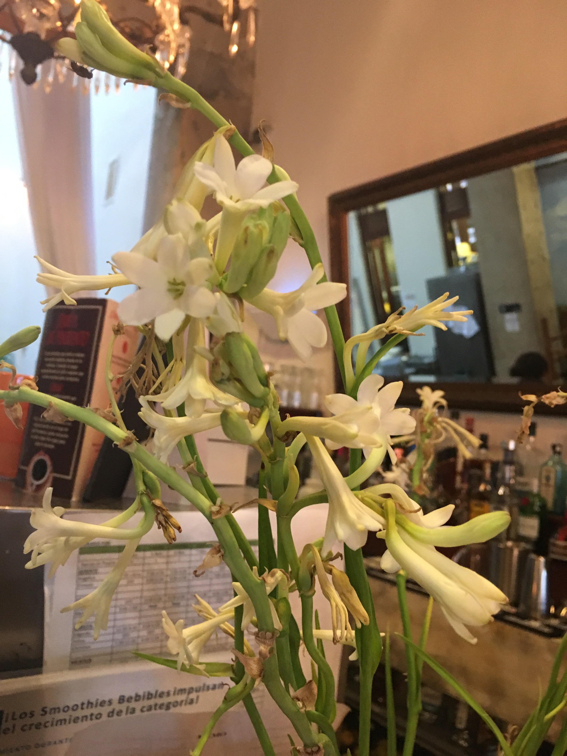 De här fina blommor plockade mina grabbar åt mig och det visade sig vara en succé! Fem, sex stycken små blommor förvändlade vår hyrbil till Åhléns’ parfymavdelning!En nyhet för mig – vit ingefära, Hedychium Flavescens. En otroligt stark doft av bra blommiga parfymer!En nyhet för mig – vit ingefära, Hedychium Flavescens. En otroligt stark doft av bra blommiga parfymer!En nyhet för mig – vit ingefära, Hedychium Flavescens. En otroligt stark doft av bra blommiga parfymer!De här spektakulära blommorna såg bättre ut än de doftade.De var inte heller någon dofthöjdare 😉 Men fina var dem!Tuberos. Hittade inga i naturen (men de fanns, jag kände det!), men på vårt favorit cafè fanns dem hela tiden.Och en liten patchouli plutt.Och allt blandat med varma havsbrisen… Sagolikt!