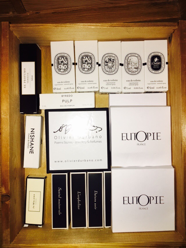 Däremot vill jag ha prover som har ett värde. Högt värde. Och detta får jag, naturellement, i utländska parfymerier.