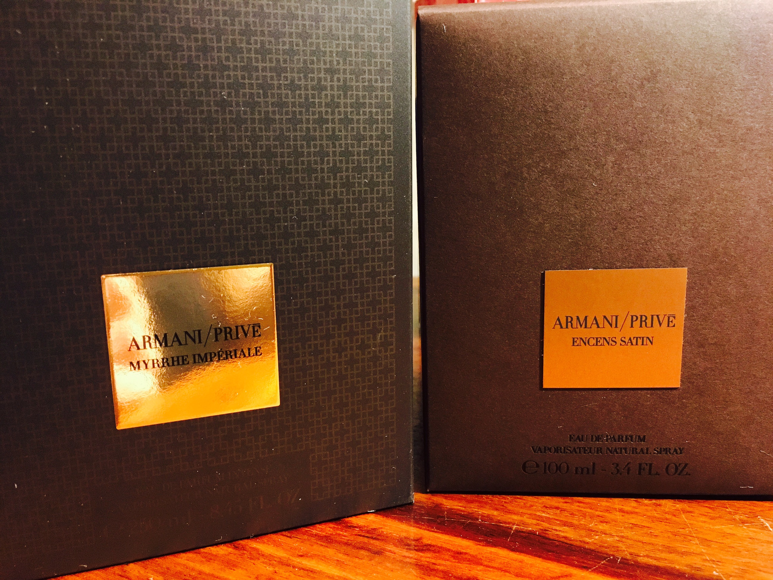 Armani Privé Myrrhe Imperiale i 250ml version (en av de bästa dofterna ever), flaska nr 2, lite till splitt och lite (khum 😉 ) till moi själv! Och Encens Satin, den mest behagliga, eleganta, sensuella rökelse i hela världen. De två är kärlek i renaste form!