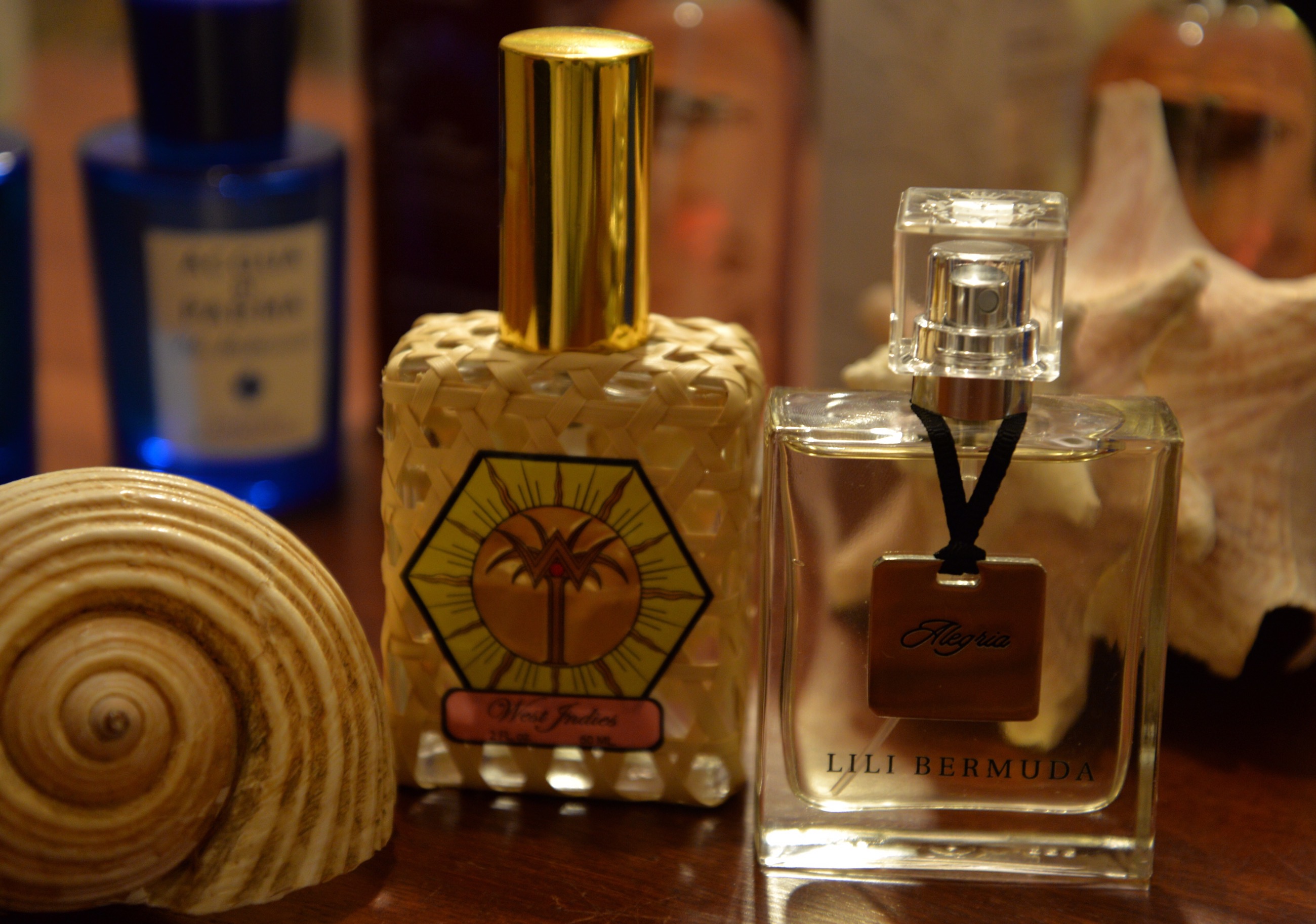 - Karibiska varma nätter med dans till daggryning – Lili Bermuda Alegria – citrusblad, ceder, frangipani med solmogen marakuja och koriander. Den tycker jag särskilt mycket om – den har superenergetisk öppning, fortsätter i rask takt till hjärnoterna och i basen (som kommer relativt fort när man är varm och svettig) lugnar den ner sig, precis när man behöver det, och visar den tyngre, men avslappnande sidan av labdanum och patchouli, super timing!