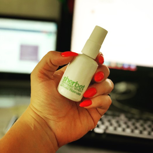 Efter en kort ledighet är jag tillbaka på spåret, på jobbet, i verkligheten. Och det känns ändå okej på något vis (tanken om novembersemester håller mig levande kanske 😉 ). Men tillbaka till dagens stjärna – Sherbet Peppermint från Comme des Garcons, en liten lurifax som jag helt och hållet glömt om i min orientalisk bubbla. Jag hade det lite tufft med rätta doftval de senaste dagarna, men när jag såg denna i skåpet så blev den genast en vinnare, än så länge två dagar i rad. Blir det över 25 grader imorgon (risken är ju väldigt stor) så kommer den att stanna ännu längre med mig. Jag har den på mitt skrivbord och använder som uppfriskande dusch av ljuvlig, fuktig grönska på hela kroppen. Den kanske kommer inte att räcka länge, men doften håller sig definitivt längre än nån sorts body mist. Och det finns INGA body mists som slår denna i den gröna, myntiga, gräsaktiga intensiteten!